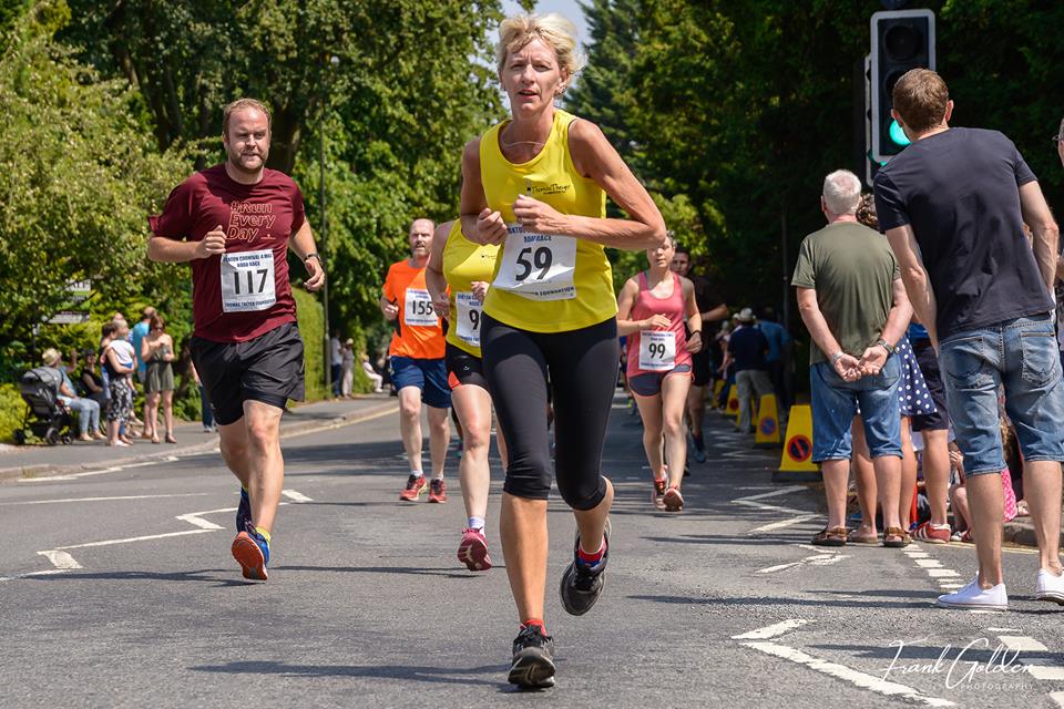 Carnival Day dawned bright & sunny, the buzz around the town palpable, with all sorts of exciting events taking place throughout the day. The 4 mile road race attracts not only locals who fancy their chances once a year, but experienced athletes from further afield who know they’re in for a bit of a test – and in front of cheering crowds. Coming all the way from Lincoln was the overall winner of the race, Will Strangeway, and in a time pretty close to the course record which stands at 20.17. Strangeway’s time was 20.45, well ahead of the next runner home, local lad Tom Drabble, running for Stockport, in 21.12. First Buxton runner home was talented youngster Elliot Meylan, 5th overall, and first Junior, in 22.58. Nicki Nealon, on holiday from Leicestershire, was first female home, and smashing the Over 50 record by an amazing four minutes, in 25.16. Buxton’s Amy Clark, rapidly returning to her usual speedy form, was second female home in 26.18. Fellow Club Member Janet Taylor took the 1st Over 50 prize (Nealon taking the 1st prize, so the Over 50 slips to the next O50), and Kate Ledin was pleased to claim the 1st Female Over 55 place. Clark, Taylor and Ledin comprised first female team winners for Buxton AC, so a double celebration for them. For the men, Terry Fowler was first Male Vet 50 and Malcolm Firth first Male Vet 65. Buxton men also took the first male team – Elliot Meylan, Jake Fearn and Sol Clark. The Thomas Theyer Memorial Trophy was won by another Buxton-based runner, Will Tighe, of Chesterfield. A great day for Buxton AC in lots of respects!